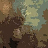 Moeder gorilla geeft een kus op het koppie van haar kind. Echte moederliefde, een bijzonder moment.