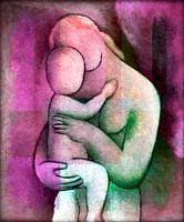 Moederliefde, een naaktcompositie in actuele trendkleuren. Geef uw muren kunst en maak er een echt thuis van.