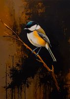 Dit clair-obscur schilderij van de Moerasmees omarmt subtiele schoonheid door dramatisch contrast. Zijn zachte bruine en zwarte verenkleed komt tevoorschijn uit de schaduw met zacht licht, schilderachtige penseelstreken die de delicate vorm vastleggen. Spetteraccenten zorgen voor beweging en suggereren de levendige energie van een…