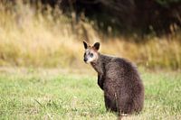 Moeraswallaby (Wallabia bicolor) op Phillip Island, Victoria, Australië.