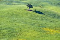 Over ‘Moerbeiboom (Morus) in een veld met bloeiende gele brem (Genista tinctoria), Toscane’ van Walter G. Allgöwer