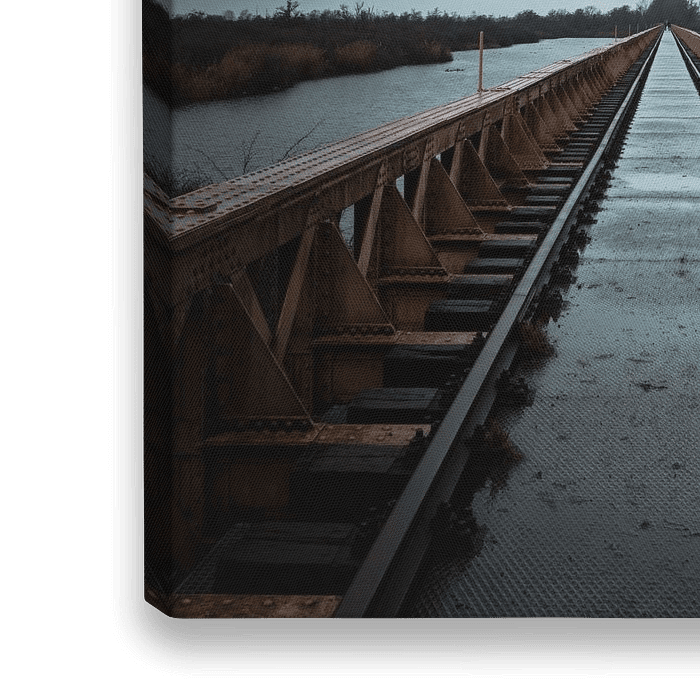 Koop dit landschapskunstwerk Moerputtense Spoorbrug van Marcel Kool op canvas, aluminium dibond, (ingelijste) fotoprint, behang en ArtFrame, op maat geprint in Fine-Art kwaliteit.