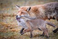 Koop de foto Moervos met welp van Andy van der Steen - Fotografie als print op canvas, aluminium dibond, (ingelijste) fotoprint, behang en ArtFrame. Voor jou op maat geprint in Fine-Art kwaliteit.