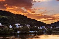 Prachtige opname van het dorpje Zell (an der Mosel) aan rivier de Moezel in Duitsland tijdens een fantastische zonsondergang in de zomer