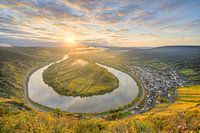 Zonsopgang aan de Moezellus op de klettersteig van de Calmont in Bremm in de herfst.