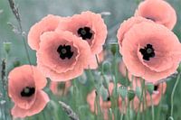 Nahaufnahme von Mohnblumen in einem Mohnblumenfeld in pastell