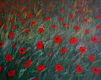zarte Mohnblumen in einer grünen Wiese