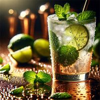 De afbeelding "Mojito" gemaakt met DALL-E toont een cocktail die zo gedetailleerd en visueel diepgaand is vastgelegd dat hij de grenzen van conventionele fotografie lijkt te overstijgen. Het levendige groen van de muntblaadjes en limoenschijfjes schittert tegen de achtergrond van glinsterend koper en warm licht. Het oppervlak van de…