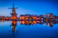 Molen de Adriaan in Haarlem bij het avondlicht.