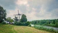 De witte molen De Vlinder met woonhuis aan de Linge in Deil. Op de foto ook een prachtige wolkenlucht en vele tinten groen van de bospartijen langs de Linge.