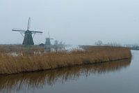Kinderdijk staat bekend om zijn molens in de polder. In de mist met glad water geeft het een heel mysterieus maar tegelijk heel rustig beeld.