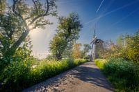 Midden in de Betuwe ligt dit mooie dijkje met bloesem en fluitenkruid. De doorkijk naar de molen is prachtig en het zonnetje kon ik door het kleine diafragma in een mooie ster vastleggen. Ik heb hier gebruik gemaakt van een groothoeklens