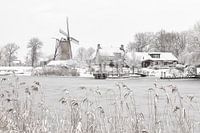 Molen in winter landschap. De windmolen van Schoondijke in Zeeuws-Vlaanderen, Zeeland, staat er prachtig bij. Een typisch Nederlands winterlandschap met in de voorgrond een rietkraag en ijs op de vaart. De molen maakt deel uit van het landgoed waar Guesthouse Ensenada gevestigd is.