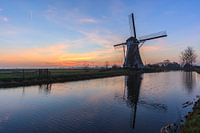Molen Bonrepas te Haastrecht tijdens een winterse zonsopkomst. Door de koude lucht worden de kleuren extra intens.