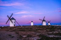 Prachtige oude molens bij Campo de Criptana in Spanje bij zonsondergang.