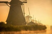 Molens Kinderdijk tijdens het ochtendgloren van Leon Okkenburg