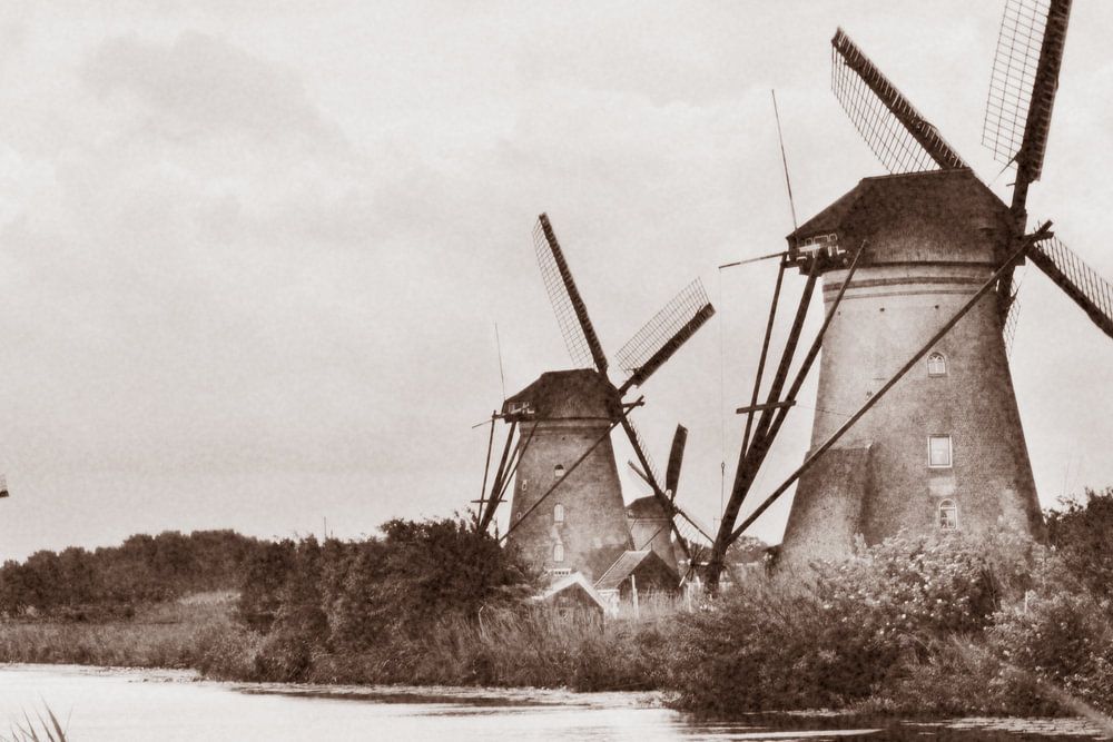 Sepia van de windmolens in kinderdijk
