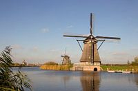 Nationaal erfgoed Kinderdijk vlakbij Rotterdam met traditionele molens langs de rivier de Lek.