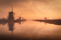 Mistige zonsopkomst bij Kinderdijk, Nederland. Wat een super ochtend was dit om de molens zo te zien opdoemen uit de mist.