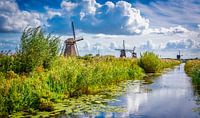 Meerdere molens op een rij, het bekende plaatje, maar dan vanuit een ander perspectief.