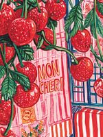 Dit kleurrijke en moderne kunstwerk kenmerkt zich door expressieve vormen en gedurfde kleurcontrasten. De rood geschilderde kersen tegen een roze achtergrond geven een zomers vakantie gevoel. De letters Mon Cheri geeft het werk Franse flair en visuele aantrekkingskracht in elke ruimte. De liefde voor de liefde en romantiek en Frankrijk …