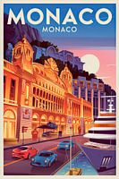De prachtige achtergrond van Monaco schittert in een magisch avondlicht, waar elegante jachten dobberen in de haven en de kleurrijke skyline wordt omzoomd door luxe voertuigen. Het majestueuze gebouw, dat de pracht en praal van vervlogen tijden uitstraalt, wordt omlijst door zachte kleurovergangen, terwijl de ondergaande zon het tafereel in een warm licht baadt. Een juweel aan de Côte d'Azur!