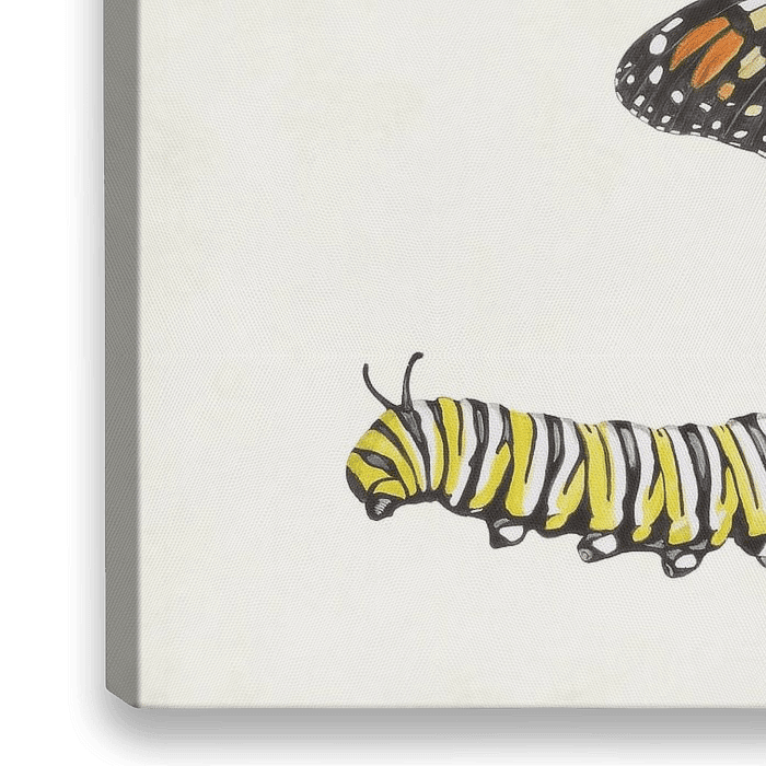 Het leven van een monarchvlinder; ei, rups, cocon en vlinder. Natuurillustrator Jasper de Ruiter legde deze prachtige vlinder vast op papier met aquarel.