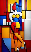 De vrouwelijke vormen als abstracte kunst in de stijl van Piet Mondriaan.