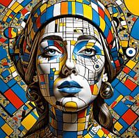 Mondriana, de vrouw in rood, geel, blauw en wit