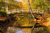Herfst in het Molenbosch Zeist Utrecht. En bos vol kleine paden en bruggetjes en vijvers. Heerlijke herfstplaat. Reflectie in het water door de stilte van de ochtend
