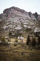 Een Mongoolse tempel verstopt tussen de bergen en heuvels van Mongolië. Op een van de weinige plekken in Mongolië waar bomen en bergen te vinden zijn.