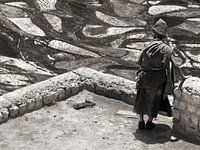 Karsha is een Tibetaans boeddhistisch klooster in Ladakh, India bij de stad Padum. Zoals alle kloosters ligt ook dit klooster tegen de bergwand en overziet de hele vallei. Deze monnik overziet vanaf het dak van het klooster de velden met zojuist geoogst gerst.