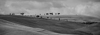 Monochrome Tuscany in 6x17 format, bomenrijen in San Quirico D'Orcia