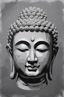 Dit monochrome Boeddha-portret straalt rust en sereniteit uit en vormt een prachtig centraal stuk voor elke ruimte. De gedetailleerde lijnen en zachte schaduwen benadrukken de kalmte in het gezicht van de Boeddha, wat een serene sfeer creëert. Dit kunstwerk is ideaal voor liefhebbers van minimalistisch en klassiek design. Door de grijstinten past het in verschillende interieurstijlen en biedt het een moment van contemplatie. Perfect voor in de woonkamer, slaapkamer of kantoor om een gevoel van balans en meditatie in huis te halen.