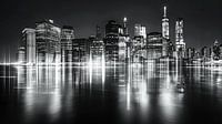 Laat je betoveren door de tijdloze elegantie van deze zwart-wit skyline. De contouren van de stad rijzen op als schaduwen tegen een heldere hemel, waarbij de afwezigheid van kleur de nadruk legt op de majestueuze architectuur en de poëzie van de stadslichten.