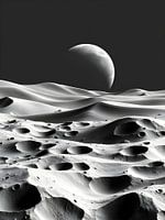 Koop dit schilderij Monochroom maanlandschap, van Artistic als reproductie geprint op canvas, aluminium dibond, (ingelijste) fotoprint, behang en ArtFrame. Voor jou op maat geprint in Fine-Art kwaliteit.