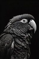 Dit prachtige zwart-wit portret van een papegaai straalt elegantie en kracht uit. De gedetailleerde veren en scherpe blik van de vogel springen direct in het oog, terwijl de donkere achtergrond de schoonheid van de papegaai nog meer naar voren laat komen. Het ontwerp past perfect in een modern of minimalistisch interieur, waarbij het monochrome kleurenschema rust en verfijning biedt. Dit kunstwerk kan een statement maken in een kantoor, woonkamer of slaapkamer en brengt een vleugje natuur op een subtiele manier in je ruimte. Voeg een vleugje elegantie toe aan je interieur met dit indrukwekkende en tijdloze ontwerp.