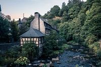 Monschau, een prachtig stadje in Duitsland waar de tijd lijkt te hebben stilgestaan. Op deze foto zien we de prachtige vakwerkhuizen schitteren in het warme late middag zonnetje. Het riviertje wat er langs stroomt maakt de idylle helemaal af