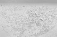 Dit beeld is omgezet naar een reliëf, als ware het geëtst of zoals men in de middeleeuwen in steen afbeeldingen maakte. Het resultaat is een beeld dat lijkt op een schets met diepte. Een origineel effect, waardoor het mooie stadje op unieke wijze op een nostalgische manier wordt afgebeeld.