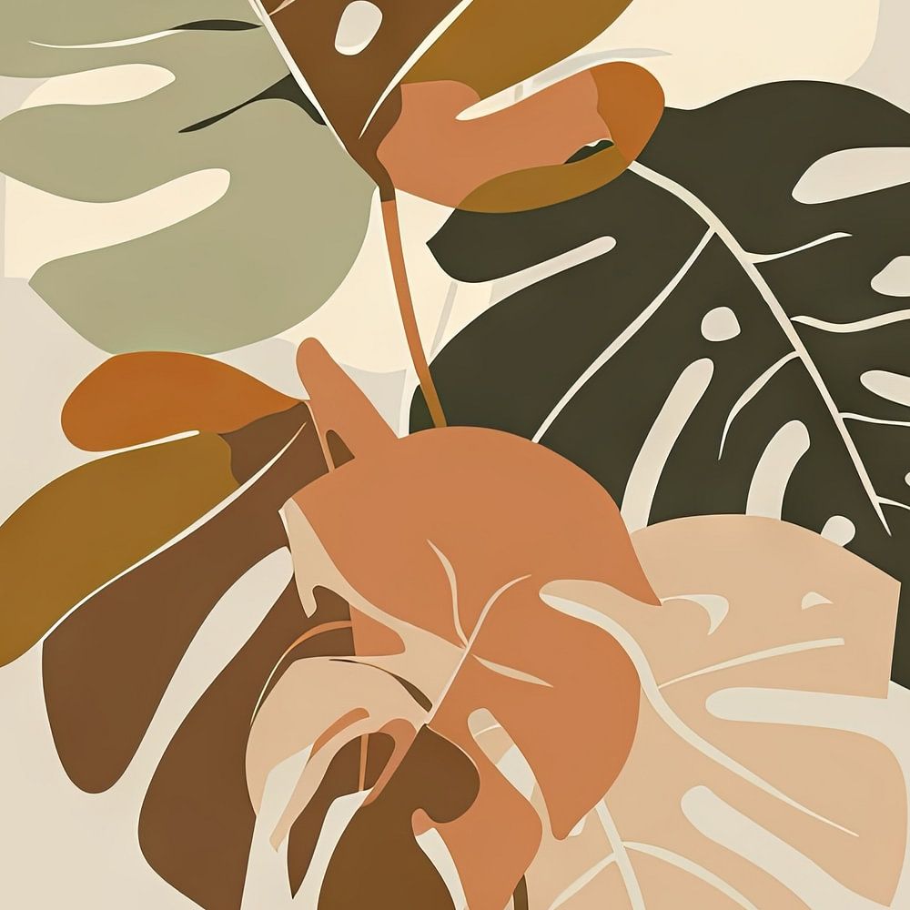 Deze elegante illustratie toont monsterabladeren in warme aardse kleuren die perfect op elkaar zijn afgestemd. Het harmonieuze kleurenpalet van groen, bruin en beige brengt een rustige en stijlvolle sfeer in elke kamer. Deze moderne botanische kunst is ideaal voor de woonkamer, slaapkamer of kantoor en voegt een natuurlijk en eigentijds tintje toe aan je huis. De abstracte voorstelling en zachte kleuren maken dit schilderij een prachtige toevoeging aan elk interieur.