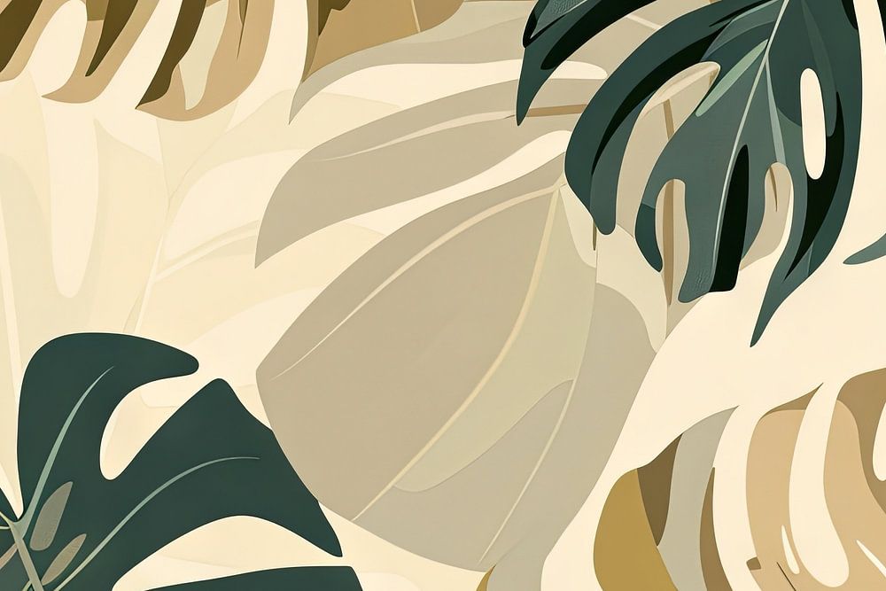 Deze elegante illustratie toont monsterabladeren in warme aardse kleuren die perfect op elkaar zijn afgestemd. Het harmonieuze kleurenpalet van groen, bruin en beige brengt een rustige en stijlvolle sfeer in elke kamer. Deze moderne botanische kunst is ideaal voor de woonkamer, slaapkamer of kantoor en voegt een natuurlijk en eigentijds tintje toe aan je huis. De abstracte voorstelling en zachte kleuren maken dit schilderij een prachtige toevoeging aan elk interieur.