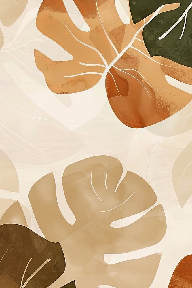 Deze elegante illustratie toont monsterabladeren in warme aardse kleuren die perfect op elkaar zijn afgestemd. Het harmonieuze kleurenpalet van groen, bruin en beige brengt een rustige en stijlvolle sfeer in elke kamer. Deze moderne botanische kunst is ideaal voor de woonkamer, slaapkamer of kantoor en voegt een natuurlijk en eigentijds tintje toe aan je huis. De abstracte voorstelling en zachte kleuren maken dit schilderij een prachtige toevoeging aan elk interieur.