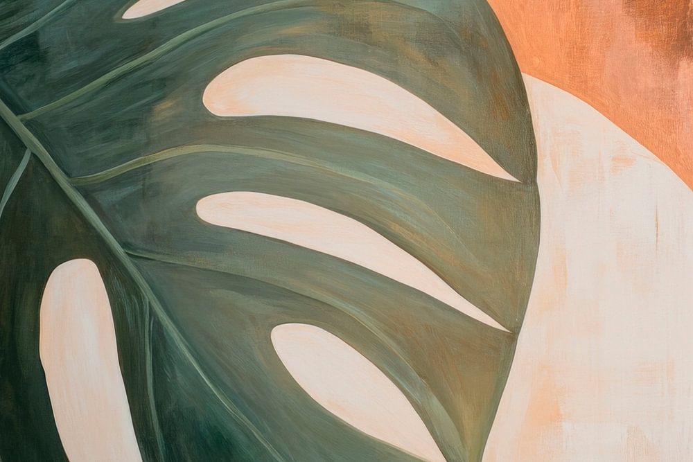 Een krachtig samenspel van groene bladeren en zachte aardetinten geeft dit kunstwerk een levendige touch. De royale vormen en het harmonieuze kleurcontrast brengen een vleugje natuur en warmte in elke kamer. Ideaal voor een woonkamer of keukenhoek, waar het de zintuigen stimuleert en een ontspannen sfeer creëert.
