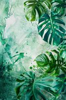Dit kunstwerk toont een groep monsterabladeren in een levendige, tropische stijl. De diepgroene tinten en opvallende uitsnijdingen van de bladeren geven deze kunstdruk een verfrissend en exotisch gevoel. De strakke, witte achtergrond brengt de natuurlijke textuur van de bladeren naar voren en creëert een eigentijdse esthetiek. Deze illustratie is ideaal voor moderne huizen en commerciële ruimtes die op zoek zijn naar een vleugje tropische natuur en zal zowel plantenliefhebbers als kunstliefhebbers die houden van levendige botanische motieven aanspreken.