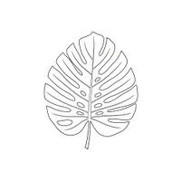 Een monochrome lijntekening van een monsterablad, gecentreerd op een witte achtergrond. Het blad vertoont zijn karakteristieke fenestraties.