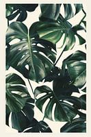 Dit kunstwerk toont de weelderige, tropische bladeren van een monstera plant in levendige groentinten. De opvallende uitsnijdingen en zachte overgangen in de bladeren geven deze kunstdruk een aantrekkelijke diepte en structuur. De lichte achtergrond benadrukt het weelderige groen en creëert een moderne, verfrissende sfeer. Deze illustratie is perfect voor iedereen die op zoek is naar een tropische look in zijn interieur en zal zowel plantenliefhebbers als designfanaten aanspreken.