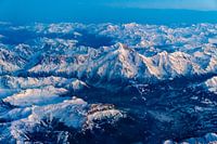 Vogelvlucht op de Mont Blanc in de schemering, Charmonix, Frankrijk