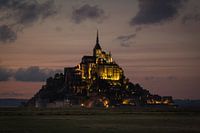 De zon was net onder en de lichten op de Mont Saint-Michel begonnen te schijnen. De donkere wolken waren perfect voor het dramatische effect.
