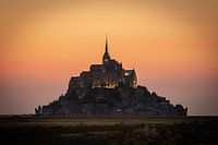 De Mont Saint Michel, een legendarisch getijden eiland in Normandië in Frankrijk net na zonsondergang