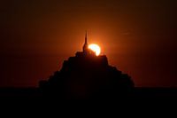De Mont Saint Michel, een legendarisch getijden eiland in Normandië in Frankrijk bij een ondergaande zon.